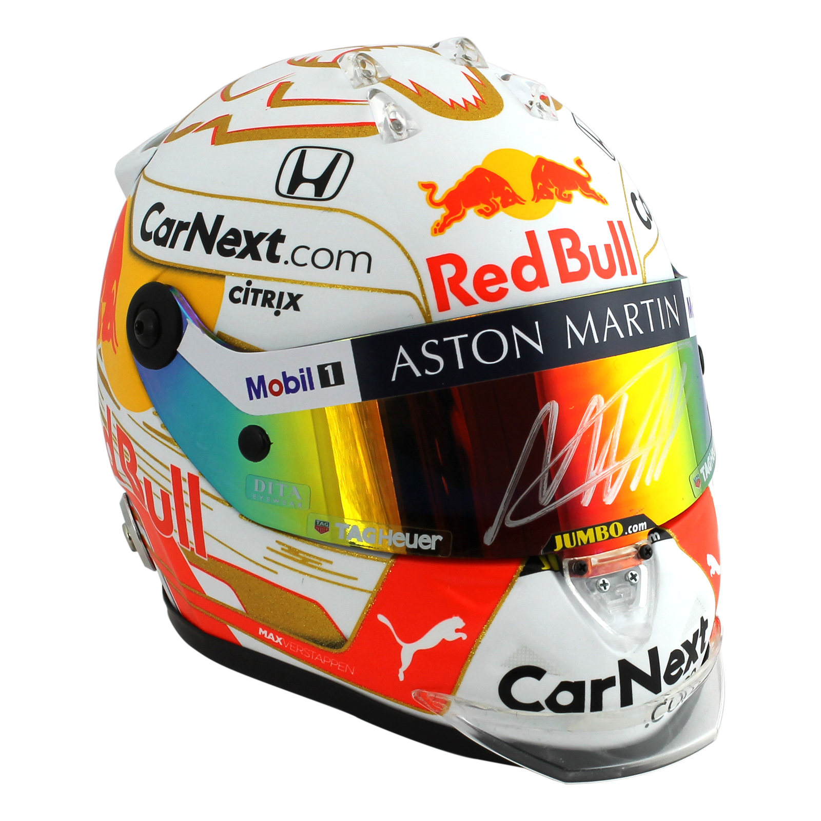 Red bull driver max verstappen has unveiled his new helmet design for the 2018 formula 1 season. It didn't fit and he didn't see properly. Minimax max verstappen austrian gp minihelmet 1:5. As part of the f1 launch week (all teams present their 2017 cars this week) the dutch showed his new helmet and explained how he made its design. Vind fantastische aanbiedingen voor verstappen helmet.